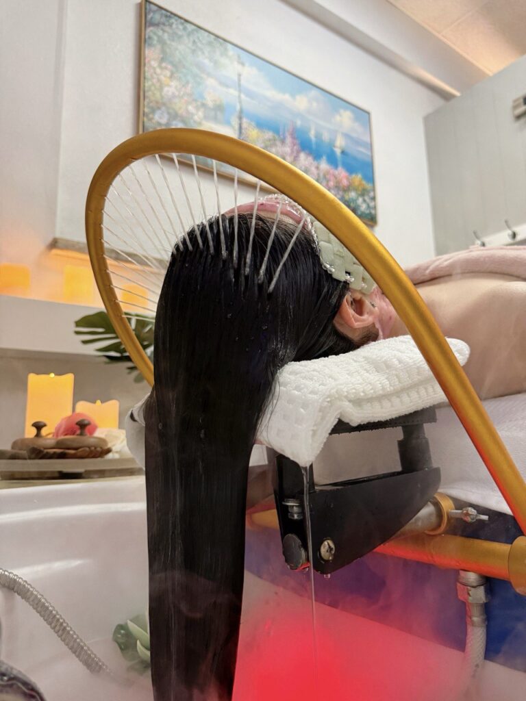 Our head spa offers more than just treatments – it’s a full sensory experience. The soothing sound of gentle music, the calming scent of essential oils, and the healing touch of our technicians come together to create a spa experience that nurtures both body and soul. As your scalp is massaged and your hair is treated, you’ll feel the tension melt away, leaving you in a state of pure relaxation.